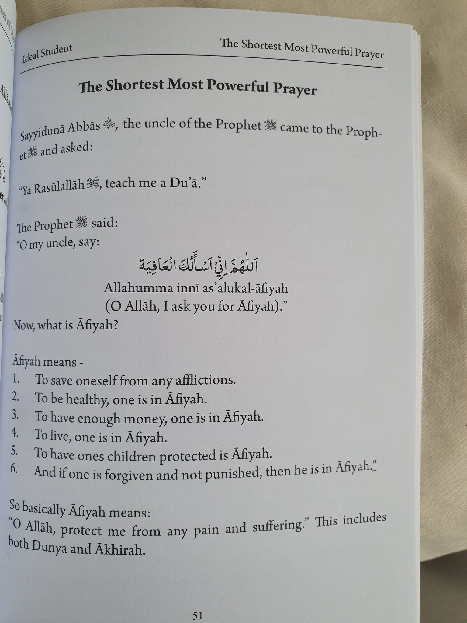 * اللَّهُمَّ إِنِّي أَسْأَلُكَ الْعَافِيَةَ. O allah, i ask you for security in this world and in the hereafter. Learn the shortest but powerful prayer allahumma inni as aluka al afiyah memorize duas for kids. (o allah, i ask you for afiyah). Few things bring fear into a student like the thoughts of a pending examination.