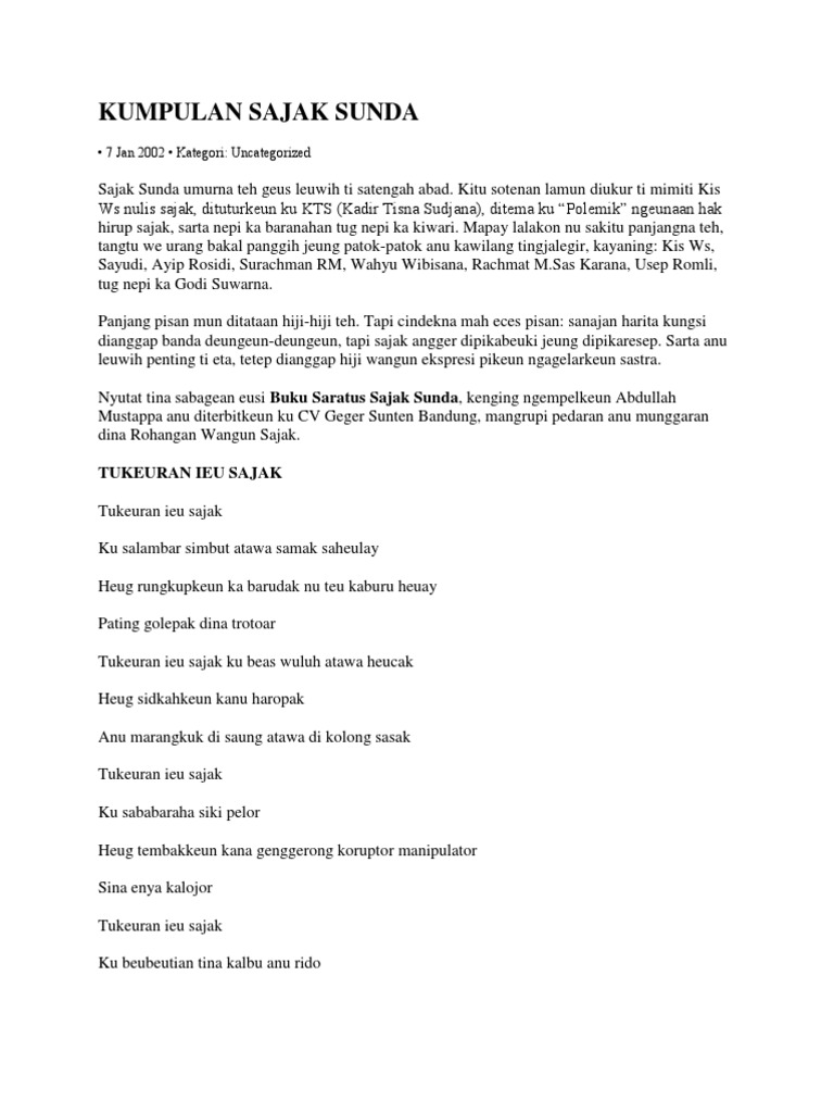 Jenis Sajak Dalam Bahasa Sunda - • karangan adalah suatu karya tulis hasil dari kegiatan seseorang untuk mengungkapkan gagasan dan menyampaikanya melalui bahasa tulis kepada pembaca untuk.