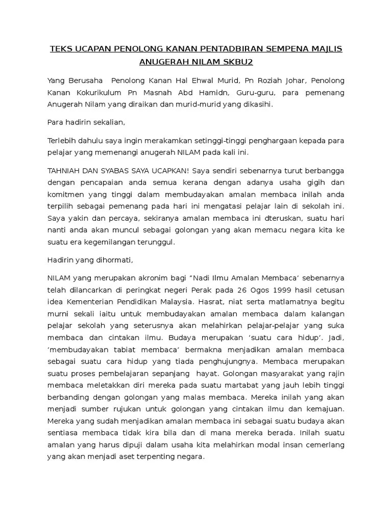 Saya ingin mengambil kesempatan untuk merakamkan ucapan tahniah kepada barisan ajk pelaksana penasihatan akademik yang telah berusaha menganjurkan dan melaksanakan program. Savesave teks ucapan perasmi program ppki for later. Chery eastar club (cec), trip 2 via cgumizan.blogspot.com. Sebarang pencemaran alam sekitar dilakukan sama ada sengaja atau sebaliknya, tidak harus dimaafkan. Kemudian memiliki pesan penting dan kesan yang menyentuh bagi para pembacanya.