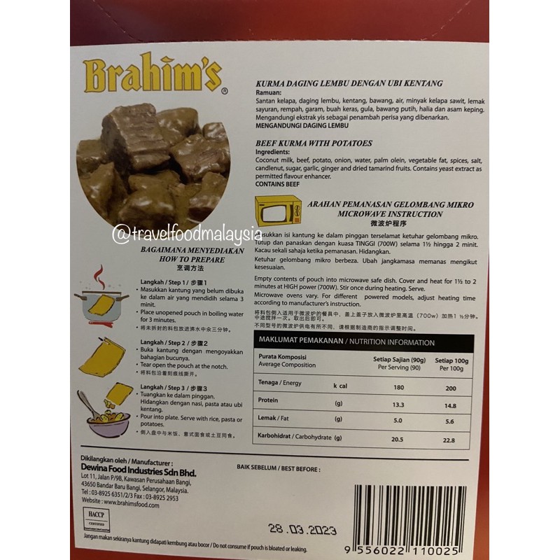 10m dewina (brahim's) 15m dewina food industries sdn.bhd 20m brahim's food product bandar baru bangi 23m ultra kilat.