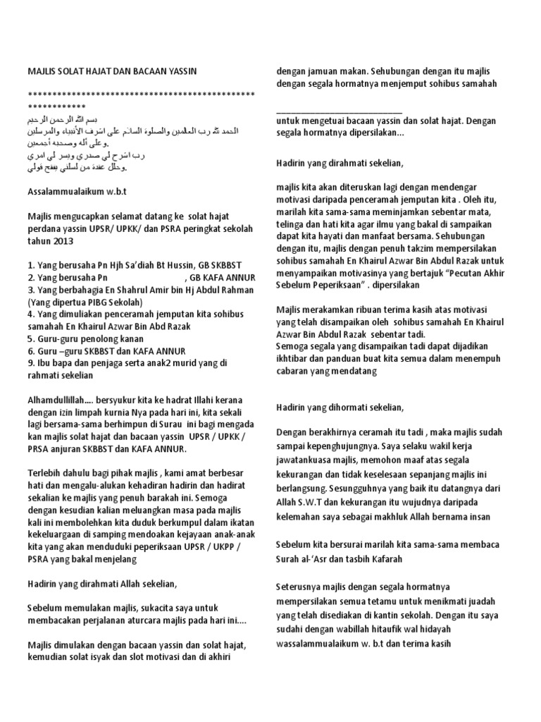 Skrip Pengacara Majlis Motivasi Tahun 6 from imgv2-1-f.scribdassets.com Teks pengacara majlis perpisahan en. Tempatan sempena anugerah inovasi sektor awam peringkat negeri pulau pinang tahun 2015. Teks pengacara majlis program motivasi kecemerlangan tahun 6 2014 bersama universiti malaysia sarawak Majlis apresiasi upsr 2017 sekolah rendah islam al ehya asshariff pada : Teks pengacara majlis penutupan kem motivasi sk skarok. Teks ucapan majlis penghargaan teks ucapan pengerusi majlis mesyuarat pibg teks ucapan usul politik teks tentang kasih sayang terhadap ekosistem teks ucapan perasmian untuk dua orang teks ucapan mohamad sabu mesyuarat agung penubuhan teks tazkirah usrah ringkas teks ucapan perasmian pusat internet. Datuk rosnah bte abdul rashid shirlin timbalan menteri kerja raya ybhg. Teks pengacara majlis aku janji murid tahun 6 :